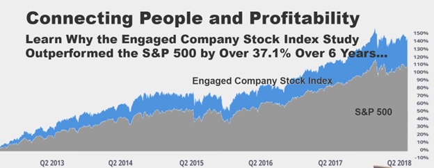 Note that the Enterprise Engagement Alliance in 2012 was among the first to identify this connection between engaged stakeholders, with the Engaged Company Stock Index managed by McBassi Inc. based on large cap equities with high levels of customer, employee, and community engagement. Over the six years of this longitudinal study, sponsored by EGR International, the fund outperformed the S&P 500 by almost 38%.