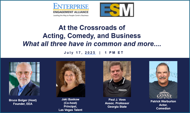 This was part of the discussion on this July 7, 1 pm ET Enterprise Engagement Alliance Purpose Leadership and Stakeholder Management YouTube show. It explores the junction of business, acting, and comedy with actor comedian Patrick Warburton, the actor and comedian, and Paul J. Voss, Ph.D., Associate Professor, Georgia State University, and President, of Ethikos, his public speaking firm.