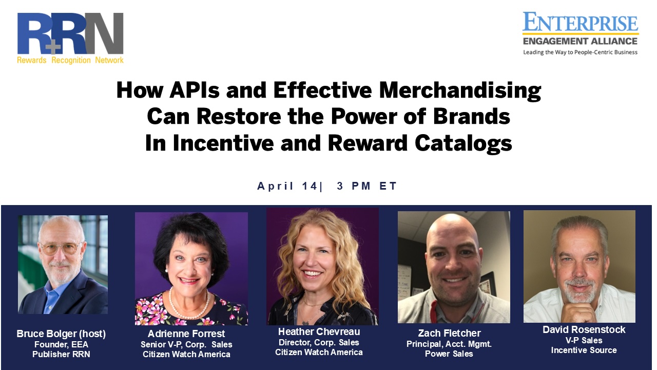 This EEA RRN YouTube Show explores how real-time API feeds to reward catalogs and effective merchandise selection can restore the once dominant roles of brands in incentive, recognition, and loyalty reward programs. One surprising finding all agreed upon: This 128-year-old field is nowhere close to achieving maturity when almost no one has every heard of it and there are less than 100 US incentive, reward, and recognition companies, compared with 25,000 marketing agencies and at least 10,000 CRM (customer relationship management) implementer. Watch and/or listen to the show here.Background on the Role of Brands in IRR